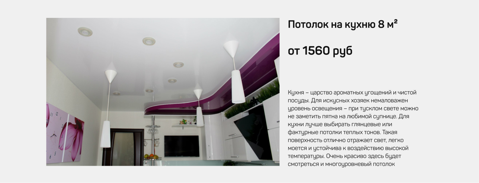 “Спасибо большое за добросовестную работу. Не налюбуюсь своим новеньким красивым потолком. Все оперативно, нашли общий язык с мастером.”