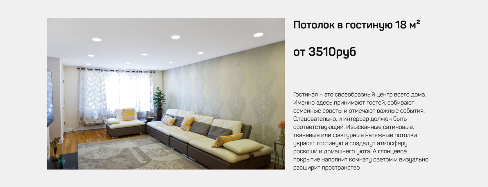 Идеально ровные матовые потолки от "Фортуна Строй" станут украшением вашего дома. Ткань покрытия отличается высокой прочностью на растяжение и идеально гладкой поверхностью. В наличии широкий спектр оттенков – от нежно-розового до шоколадно-золотистого цвета. Вам остается только заказать.